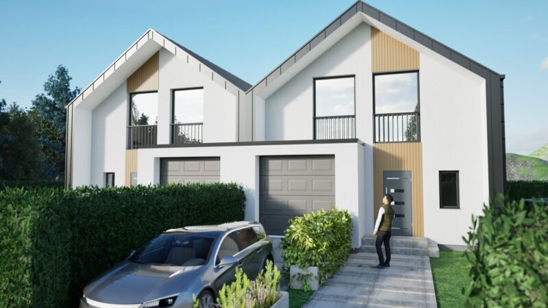 Seria O – Domy z garażem w bryle domu.