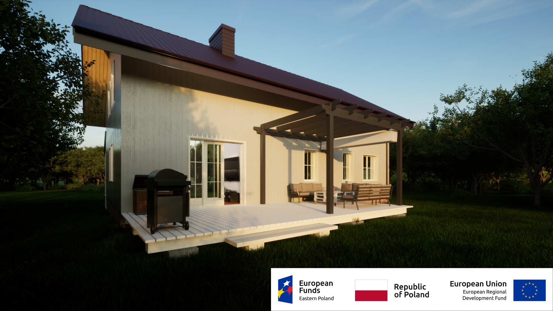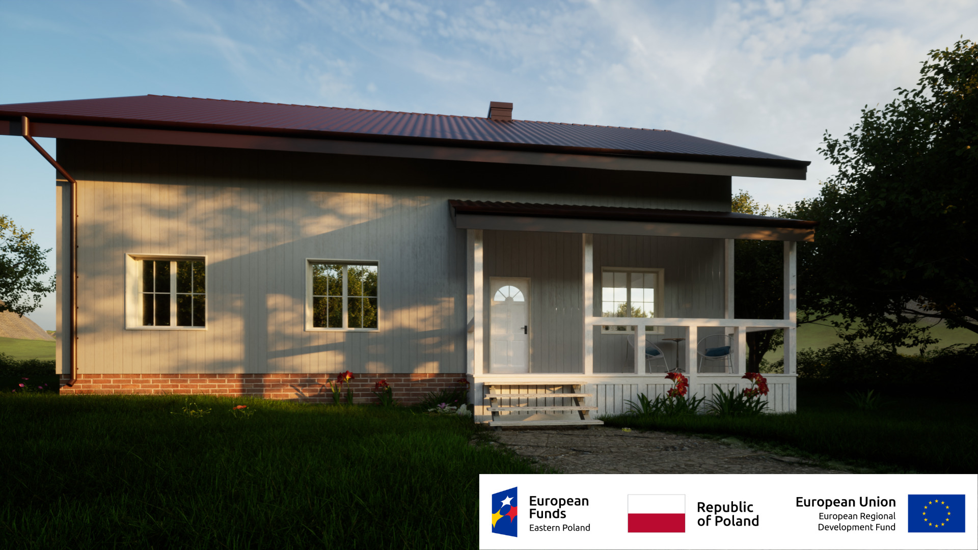 - Erstellung des Daches und der Außenwände mit Hausfassade