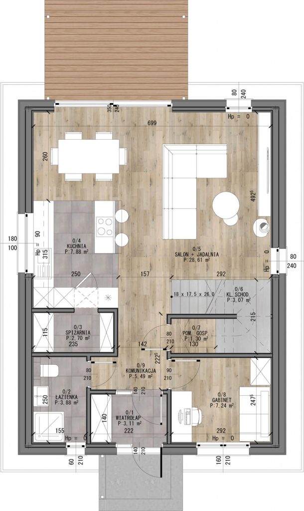 Dies ist definitiv eine vernünftige Wahl. Die optimierte Version des energieeffizienten Hauses S1 ermöglicht aufgrund der geringeren Baufläche (bis zu 70 m2) und der optimalen Nutzung des Dachgeschosses den Bau auf kleineren Grundstücken ohne Baugenehmigung!