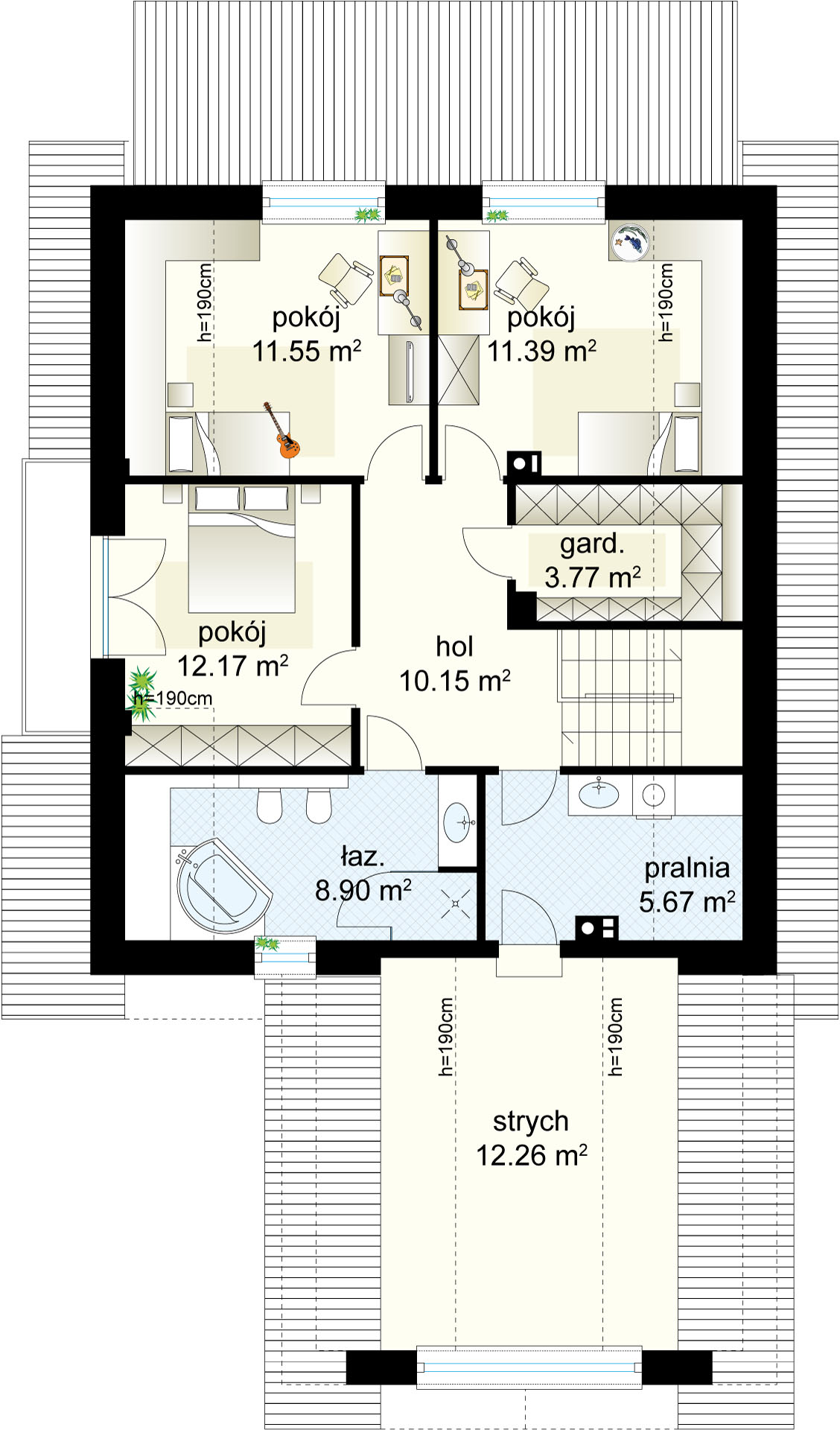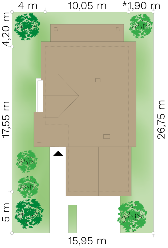 Dodatkową zaletą jest niewielka szerokość budynku, dzięki czemu wymaga stosunkowo wąskiej działki.